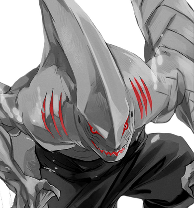 Odysseus Thalassus, The Warrior, sports a stature even more imposing than The Watcher, resembling a anthropomorphic shark covered in solid carapace. The Warrior is considered the strongest of the Thalassa Series in terms of raw physical combat, said to rival even the best of combatants of the lands. The Warrior is notably more aggressive than his siblings, never hesitating to lunge if one strays too close. He seems to personally train the Guides in combat.Odysseus may be quick to anger, but he is quicker to move to tears, and even quicker to burst into laughter. An extremely hearty man, loving the Guides and any new friend as if they were part of his rippling flesh. He is, however, not particularly intelligent, nor has he made an effort to improve upon that fact. Despite so, he has (begrudgingly) applied advice from The Scholar in battle several times.