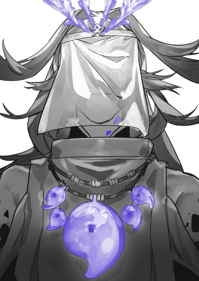 Theoi Thalassus, The Acolyte, resembles a tall sea elf characterized by wearing a coral-crowned veil, with patches of hard, black scales spread throughout his body. The Acolyte rarely carries out his duties as a Guide, defaulting more to communing with the Pantheons for divinations and requests for divine intervention. He has taken a remarkable liking to Susanoo-no-Mikoto.Theoi often breaks into religious sermons when talked to, singing the gospels of the Gods. Despite his ramblings, he fashions himself as helpful and compassionate, as per verbatim, in the name of God. His fixation towards the deities, however, does not tread forcefulness, but instead aims to guide his peers into the correct course of action.